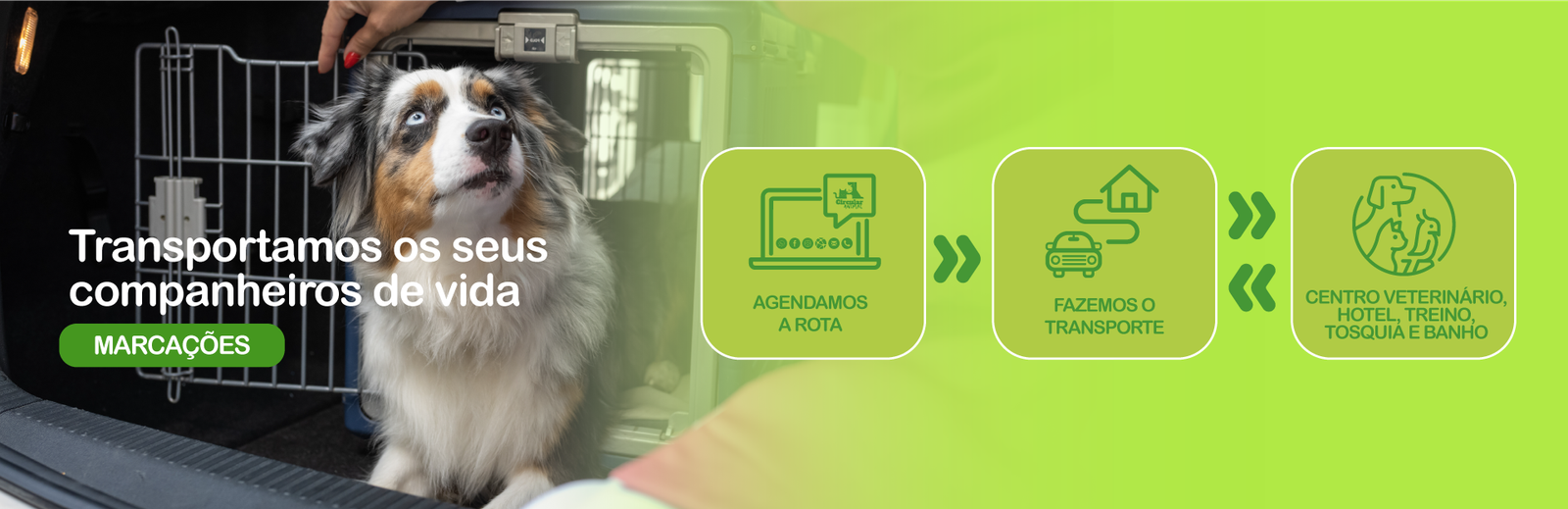 O transporte é realizado recorrendo a equipamentos de transporte adaptados, homologados e verificados para o transporte de animais de companhia, em função das respetivas especificidades e caraterísticas raciais, selecionados de marcas com referência na área animal. É importante conhecer previamente as medidas do seu animal, para adaptar a tipologia do equipamento de transporte a escolher, de forma a garantir a comodidade, a segurança, a ventilação e a mobilidade, com espaço suficiente para que se possa movimentar, esticar e conseguir dar a volta durante a sua viagem.
